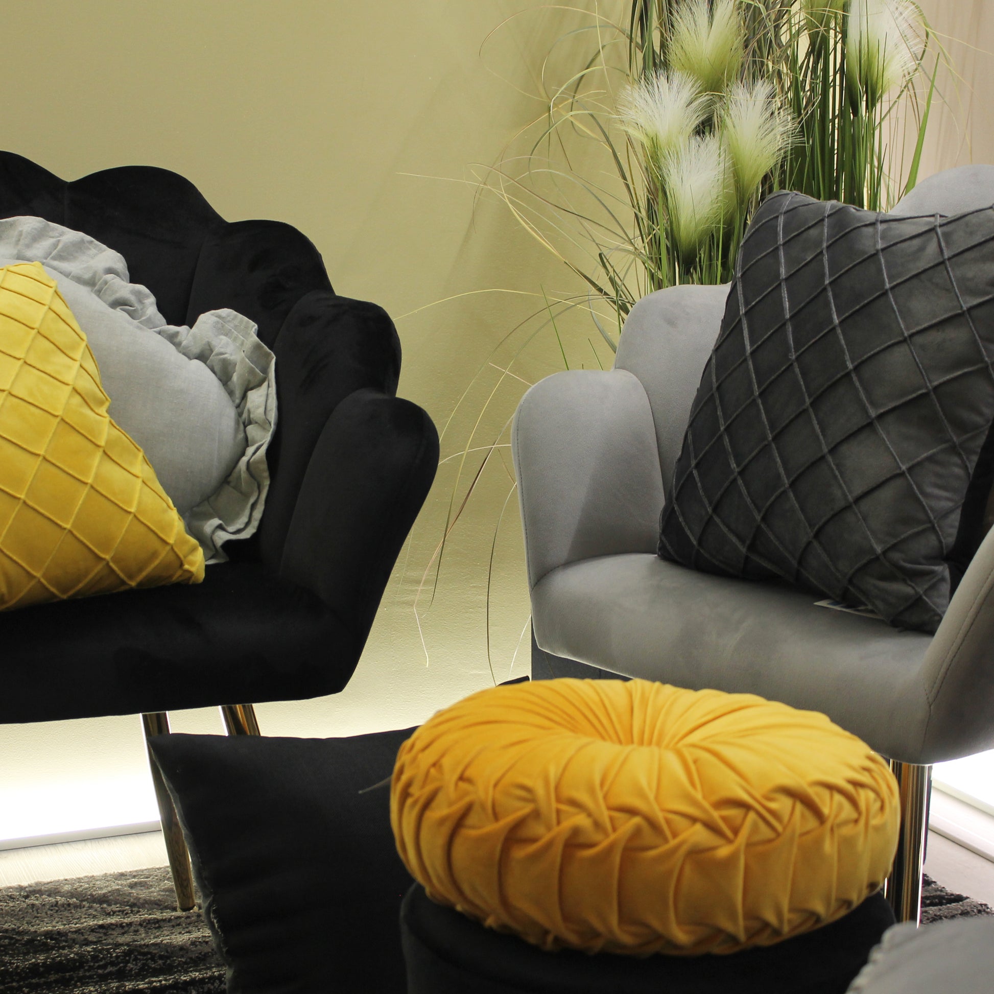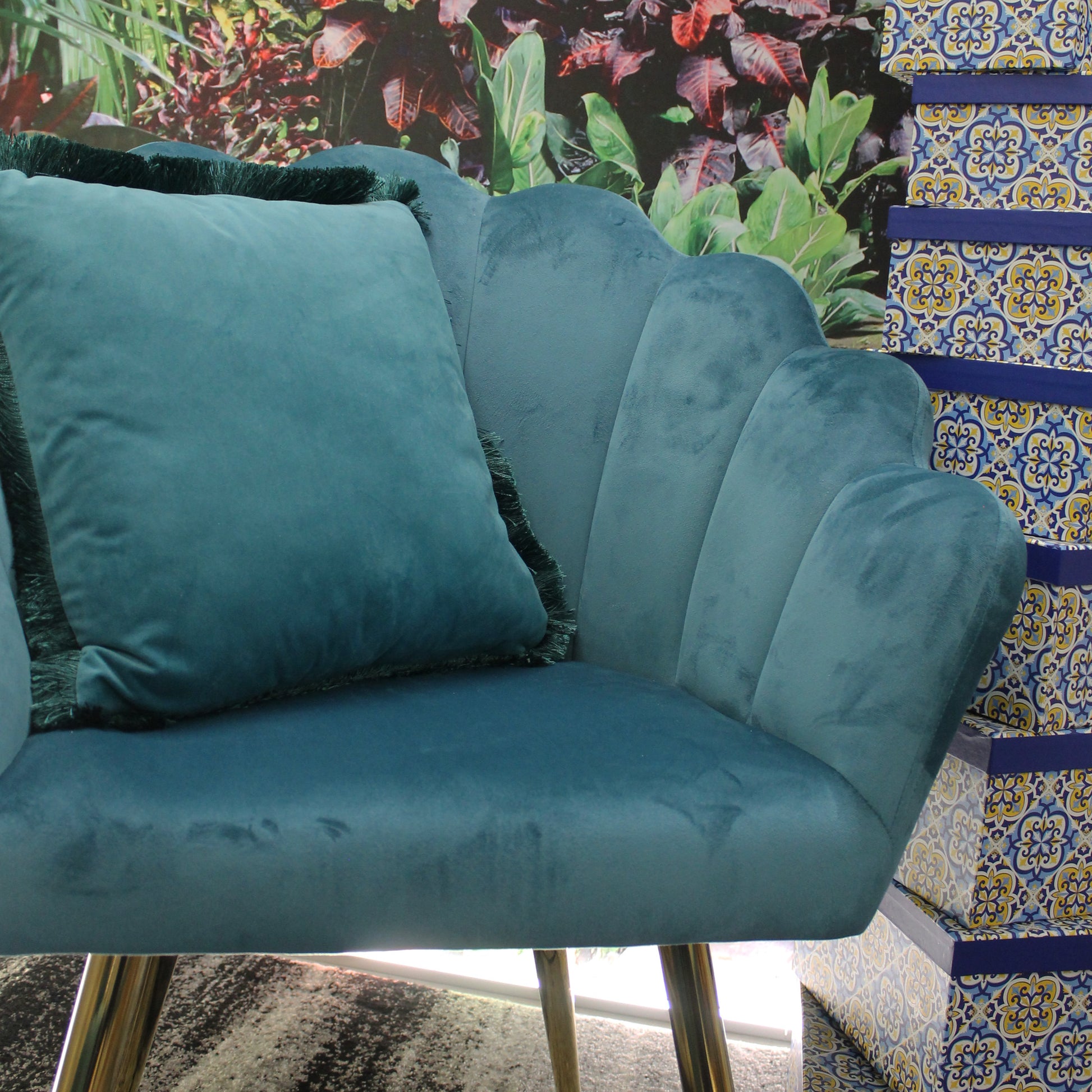 Poltrona Velluto Imbottita con Schienale a Conchiglia